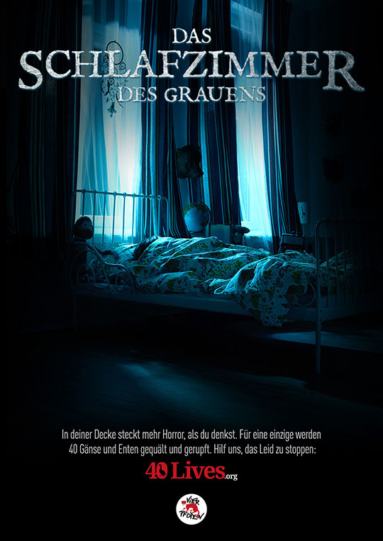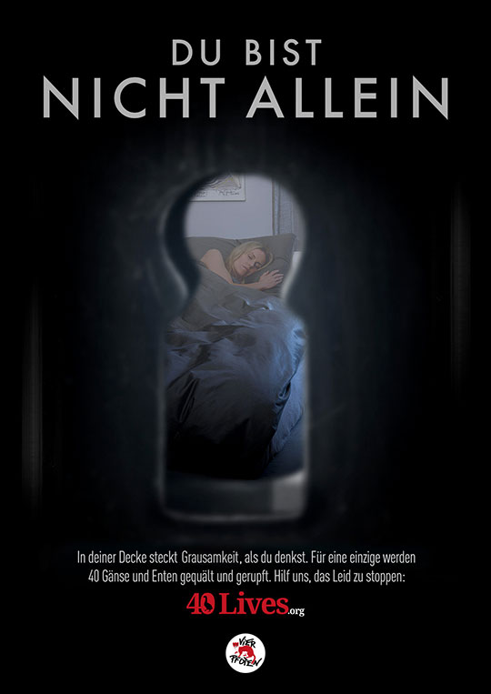 Hinter flauschiger Bettwäsche steckt ein knallhartes Geschäft. Eine durchschnittliche Bettdecke enthält Daunen von etwa 40 Gänsen, die nicht selten bei lebendigem Leibe mehrfach qualvoll gerupft werden. Diesen unhaltbaren Zustand wollte VIER PFOTEN ändern und große europäishce Handelsketten zum Kauf von Daunenprodukten aus ethischer Produktion bewegen.